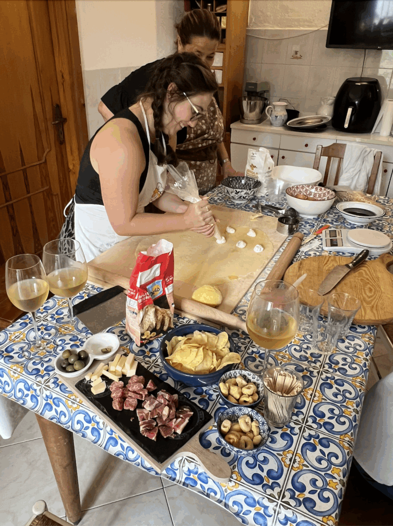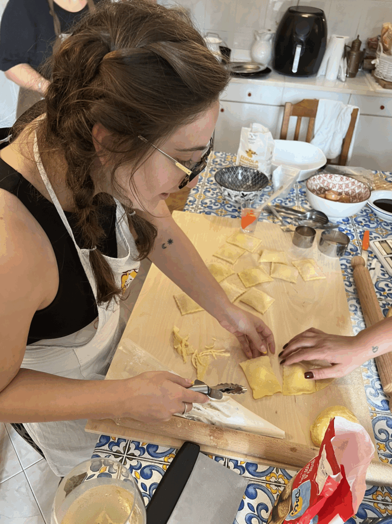 One of my favorite experiences from the trip was our cooking class on the island of Ischia. It was hosted in a local family’s home, and they were so welcoming! We learned to make homemade gnocchi, fettuccine, ravioli, and tiramisu from scratch. It was such an incredible experience!